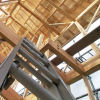 階段は当初、手摺壁を立ち上げる箱階段でしたが、建築主様の要望でストリップ階段になりました。