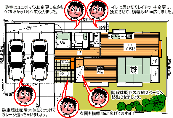 我が息子、いつのまにやら大きくなり、あ〜部屋数足りない。我が家の駐車場1台分、家内の車、あ〜200m先。収納少なく、あ〜廊下にタンスが。増築しようか、どうしようか、いやいや、ここはきばって建て替えろうか!考えれば考えるほど、あ〜、わからん。